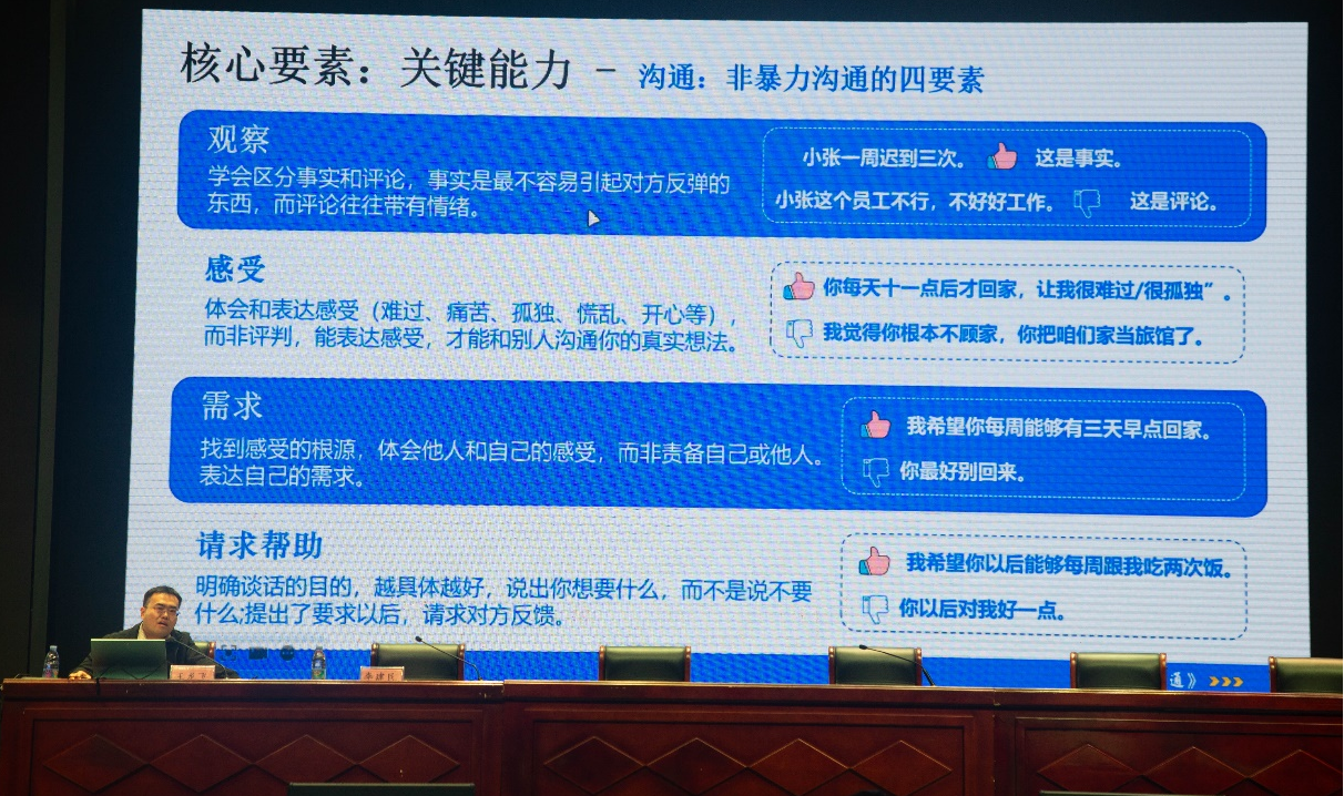 讲座围绕就业观念引导、关键能力培养、职业生涯规划三大模块展开。王龙飞通过展示企业真实项目案例,解析了从校园到职场的思维转变要点。在能力培养环节,他提出“T型能力模型”,建议学生构建“专业深度+数字素养+跨界视野”的复合型能力结构。针对职业规划,现场演示了SWOT分析法在个人发展中的应用,并分享了“三年扎根、五年成长、十年引领”的阶梯式发展路径。