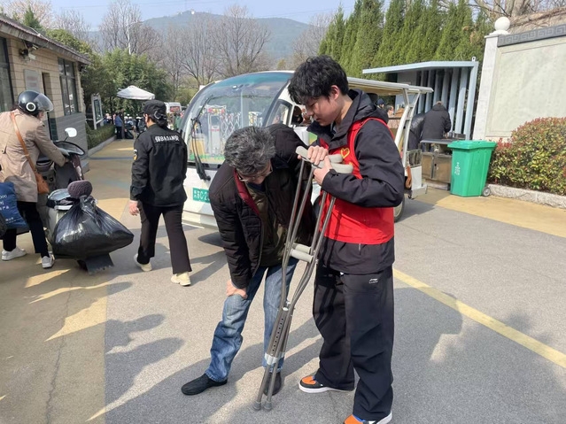 山上服务区——坚实臂膀:面对崎岖的山路,志愿者们主动请缨,协助群众提拿重物,搀扶行动不便的老人登山,成为祭扫路上最可靠的“搬运工”和“守护者”。